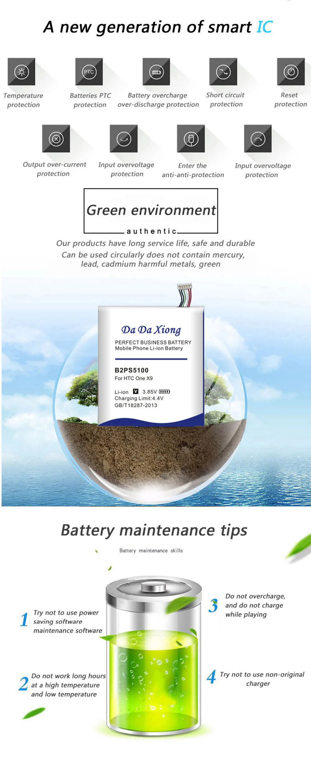 6.CE standard Security and environment: Double protection functions.Double IC and PCB electric board protect charge discharge and short circuit.