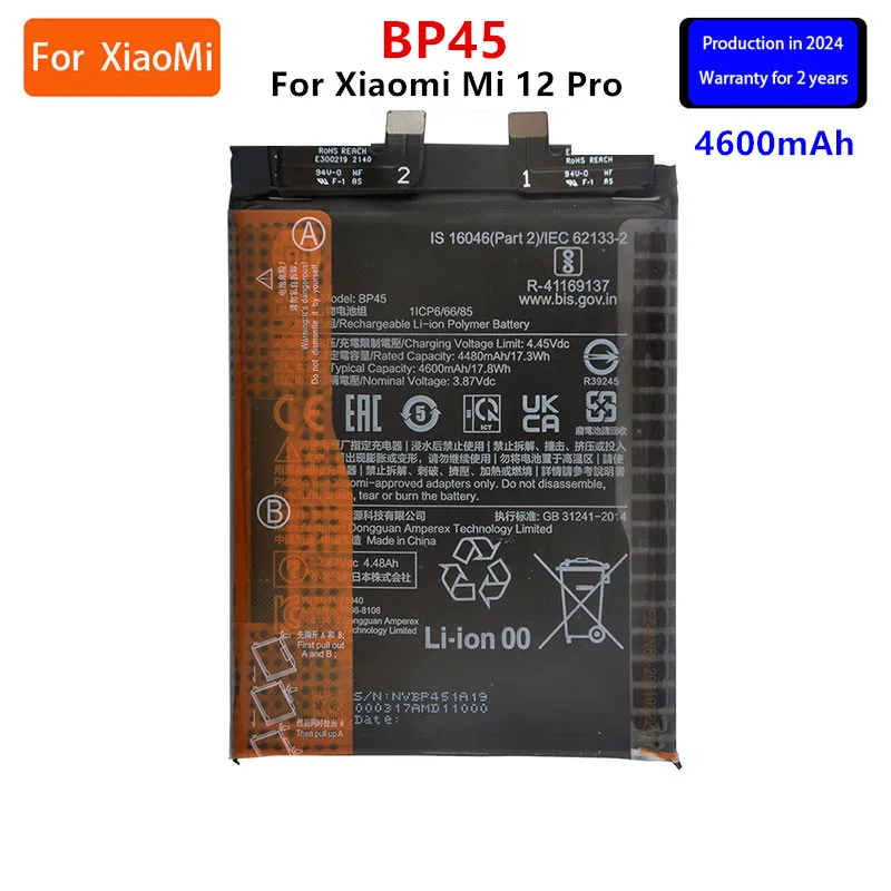 2024 years 100% Orginal BP45 4600mAh Battery For Xiaomi Mi 12 Pro Phone Replacement Batteries+Tools