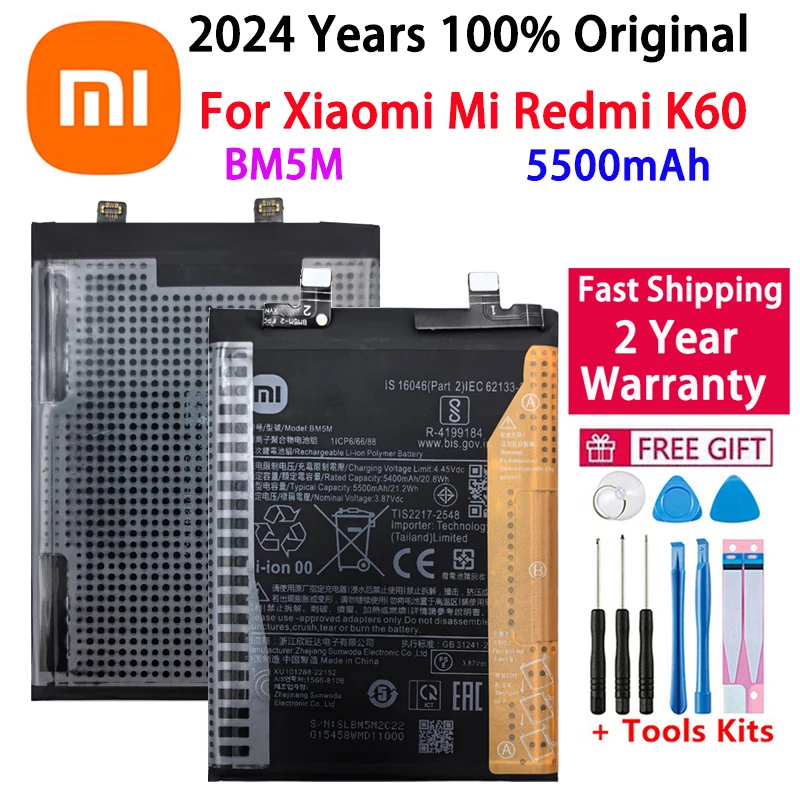 2024 Years 100% Original High Quality BM5M 5500mAh Battery For Xiaomi For Mi RedMi K60 Phone Replacement Batteries Fast Shipping