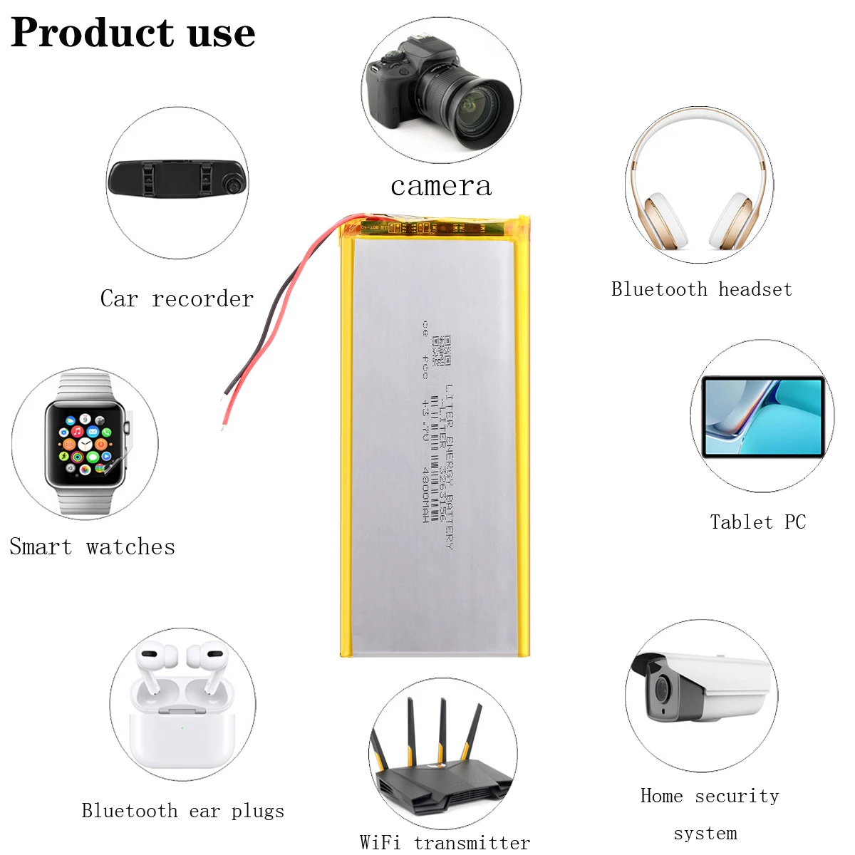 Widely used: Mainly suitable for Bluetooth speakers, Bluetooth headsets, smart watches, smart bracelets, alarms, medical equipment, tablet computers (MID), PDA, mobile power, LED solar lamps, mobile audio, loudspeakers, navigation (GPS), driving Electronic equipment such as recorders, electric toys, and electronic scale intelligent cleaning robots.