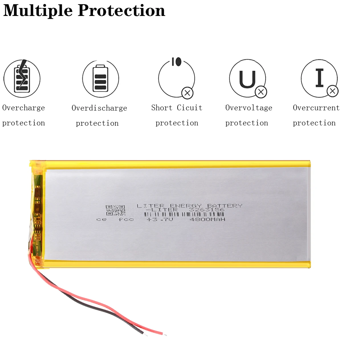 High protection, built-in protection board, over-charge and over-discharge protection, battery use is assured.