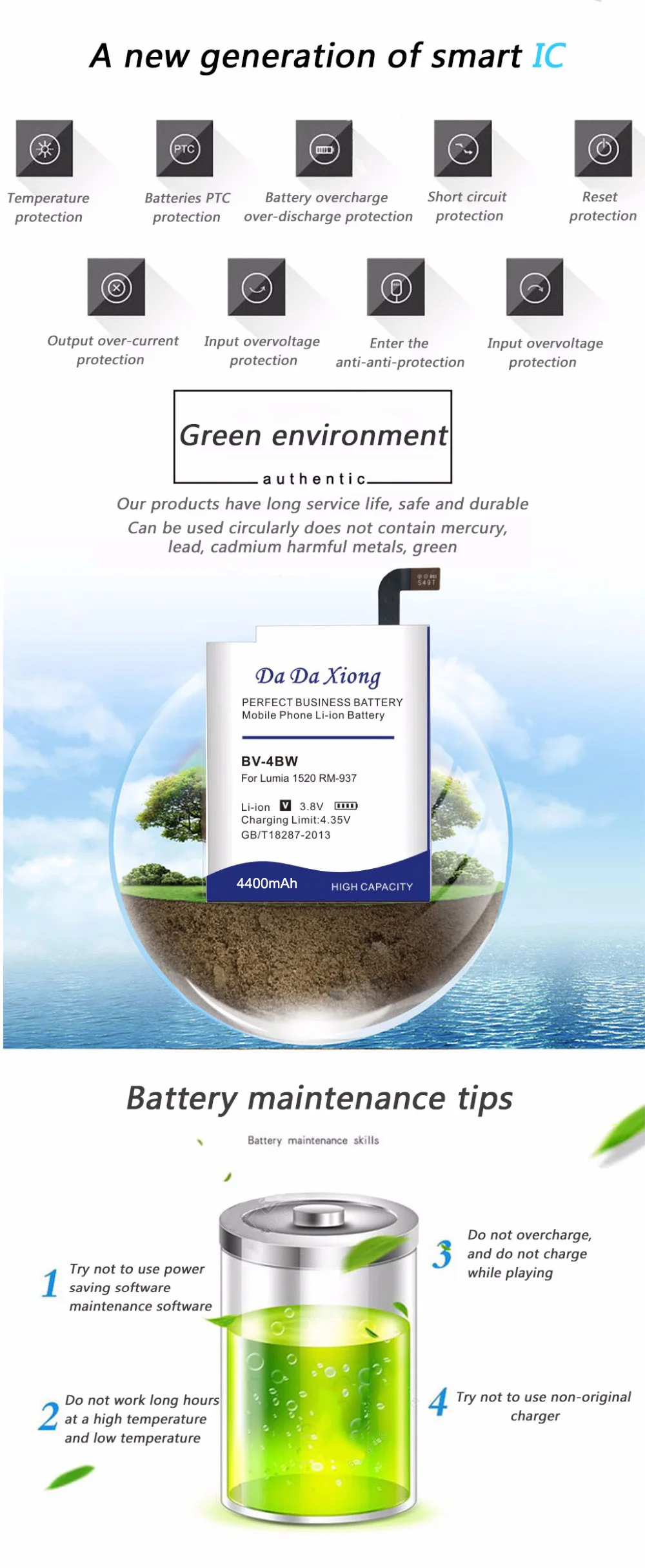 6.CE standard Security and environment: Double protection functions.Double IC and PCB electric board protect charge discharge and short circuit.