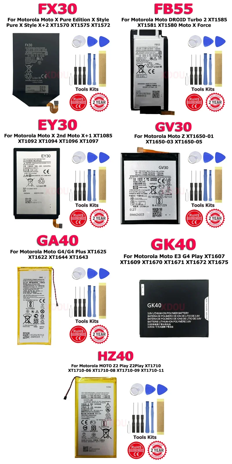 HZ40 FX30 GA40 GK40 GV30 EY30 FB55 Battery For Motorola Moto Turbo 2 Z Z2 X+1 E3 G4 XT1710 XT1570 XT1625 XT1609 Plus Play+Tool