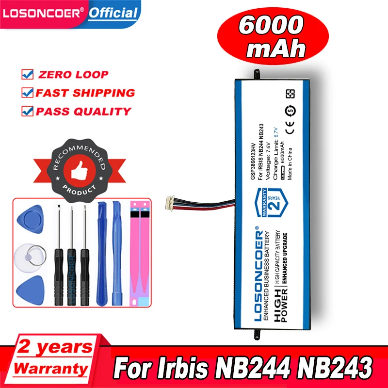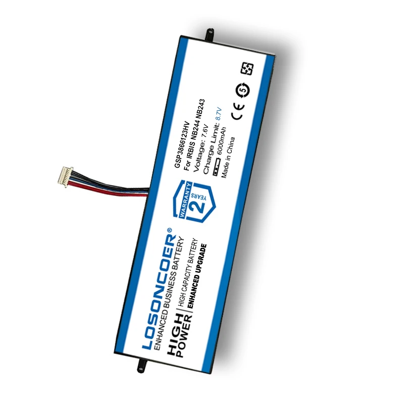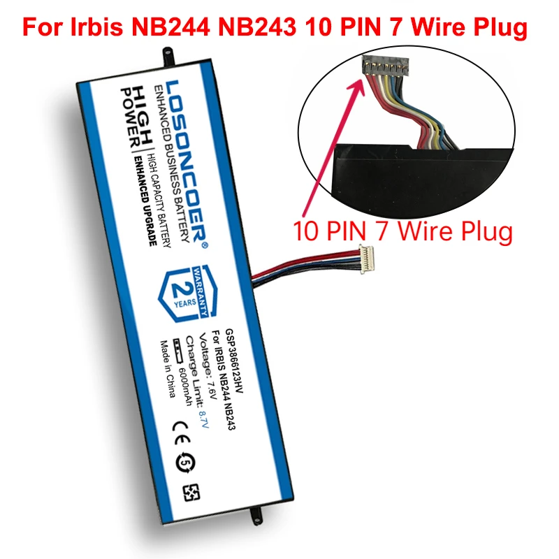LOSONCOER Good 6000mAh Laptop Battery GSP3866123HV For Irbis NB244 NB243 Notebook 10 PIN 7 Wire Plug Battery
