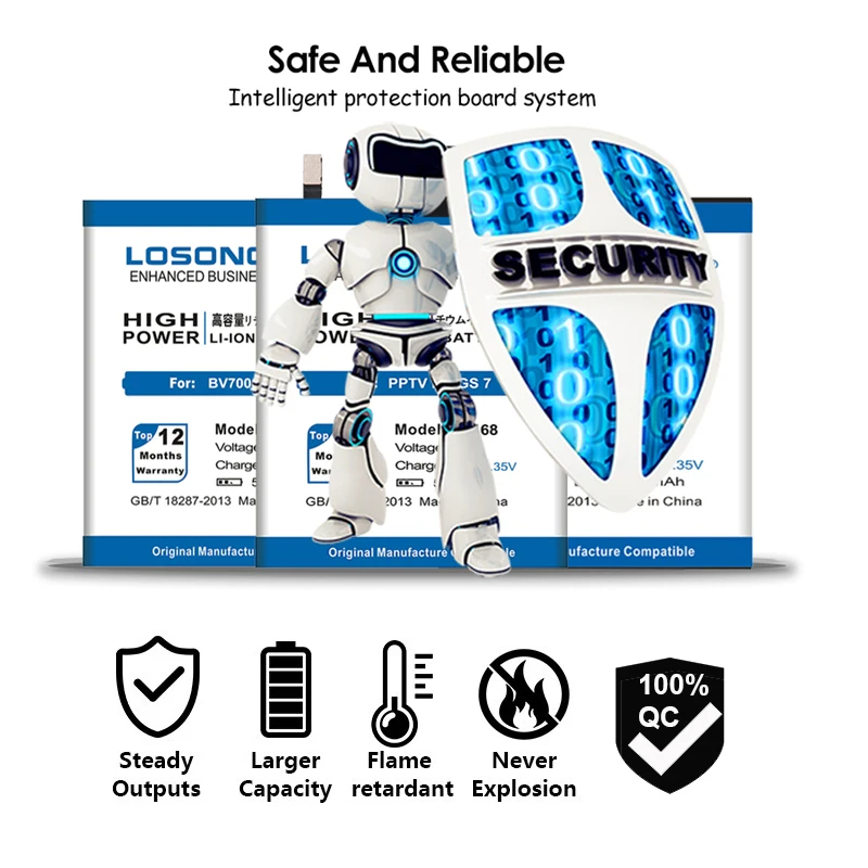CE standard Security and environment: Double protection functions.Double IC and PCB electric board protect charge discharge and short circuit.