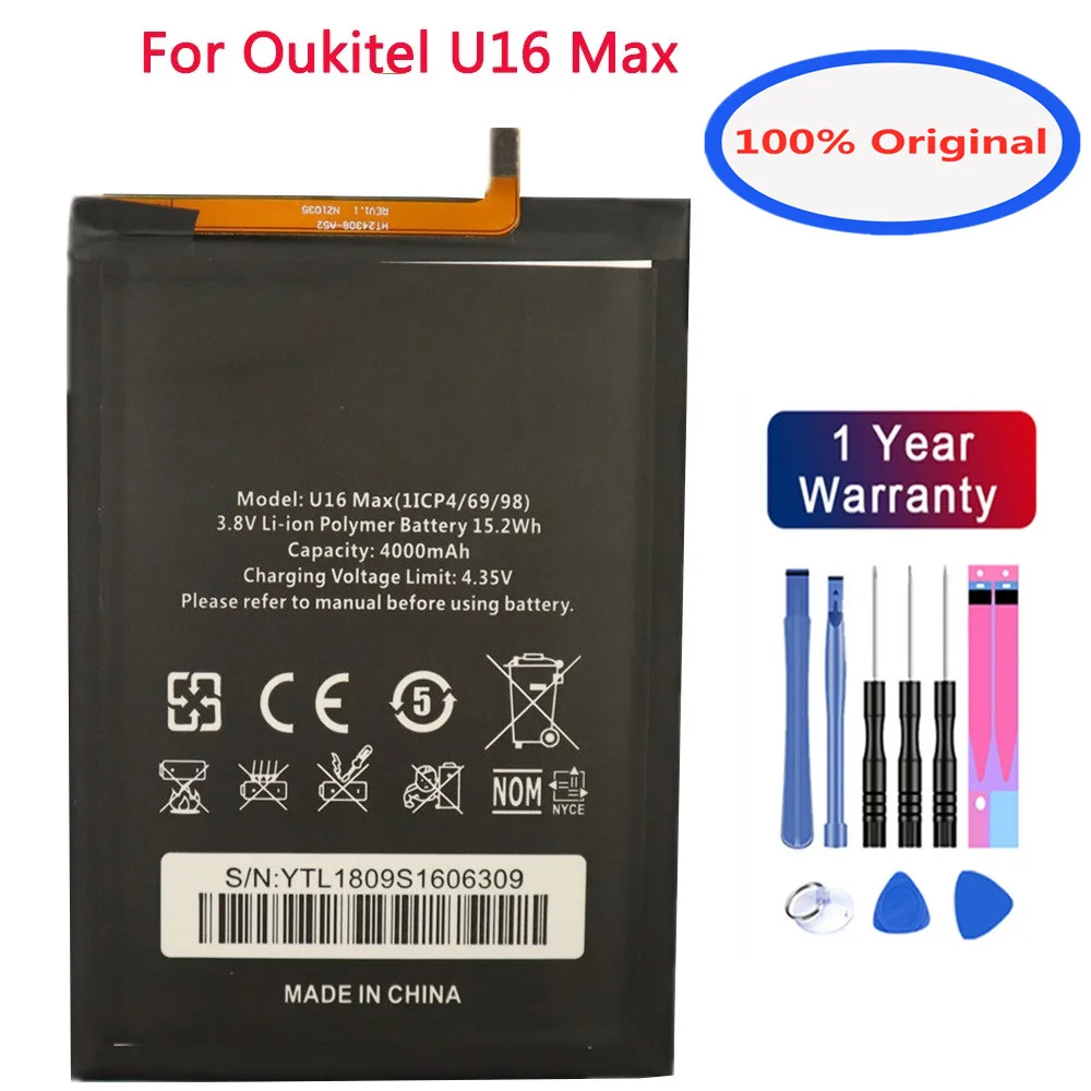 100% Original High Capacity Oukitel U16 Max Battery 4000mAh Battery Replacement for Oukitel U16 Max Smart Phone + Gift Tools
