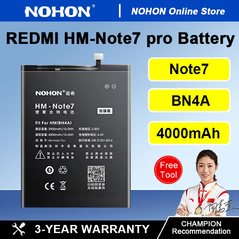 NOHON 4000mAh Battery for Redmi Note 7 Note 7Pro BN4A Replacement Battery for Xiaomi Redmi Note7 XM Note7Pro with Free tools