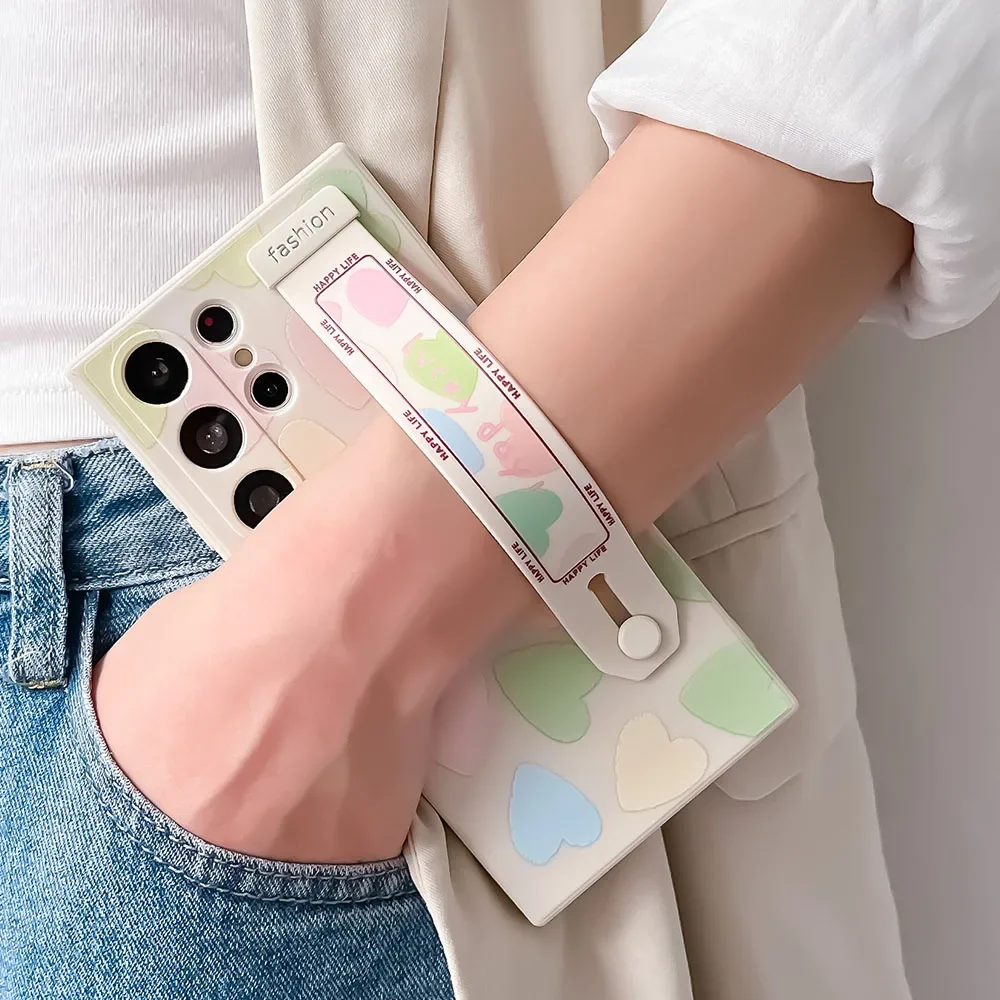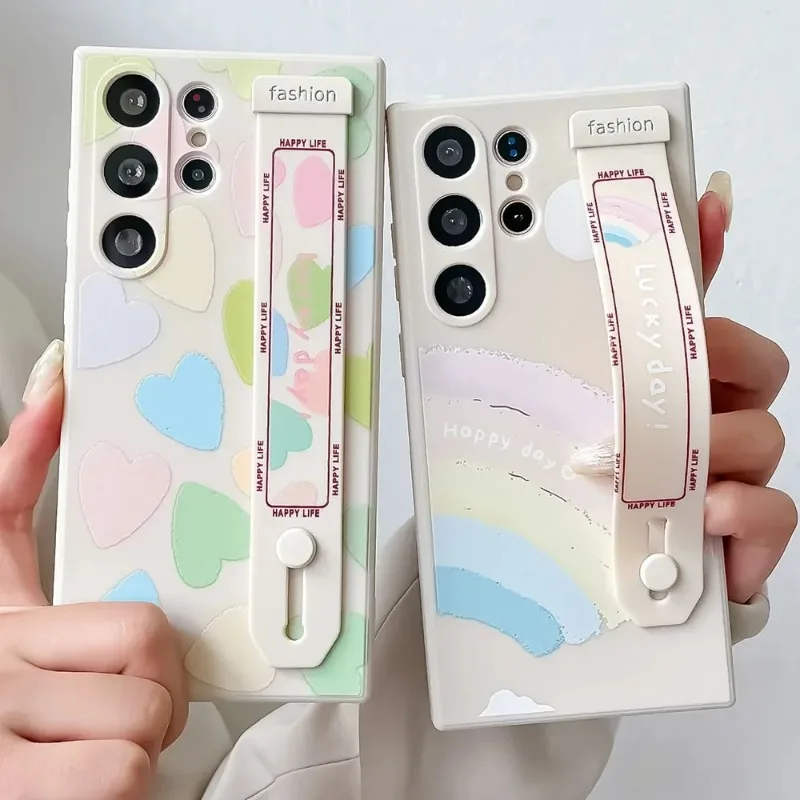 SoCouple Wrist Strap Phone Holder Case For Samsung A53 52s 54 51 50 71 72 73 34 32 11 12 14 13 21 31 22 23 24 33 Love Heart Case