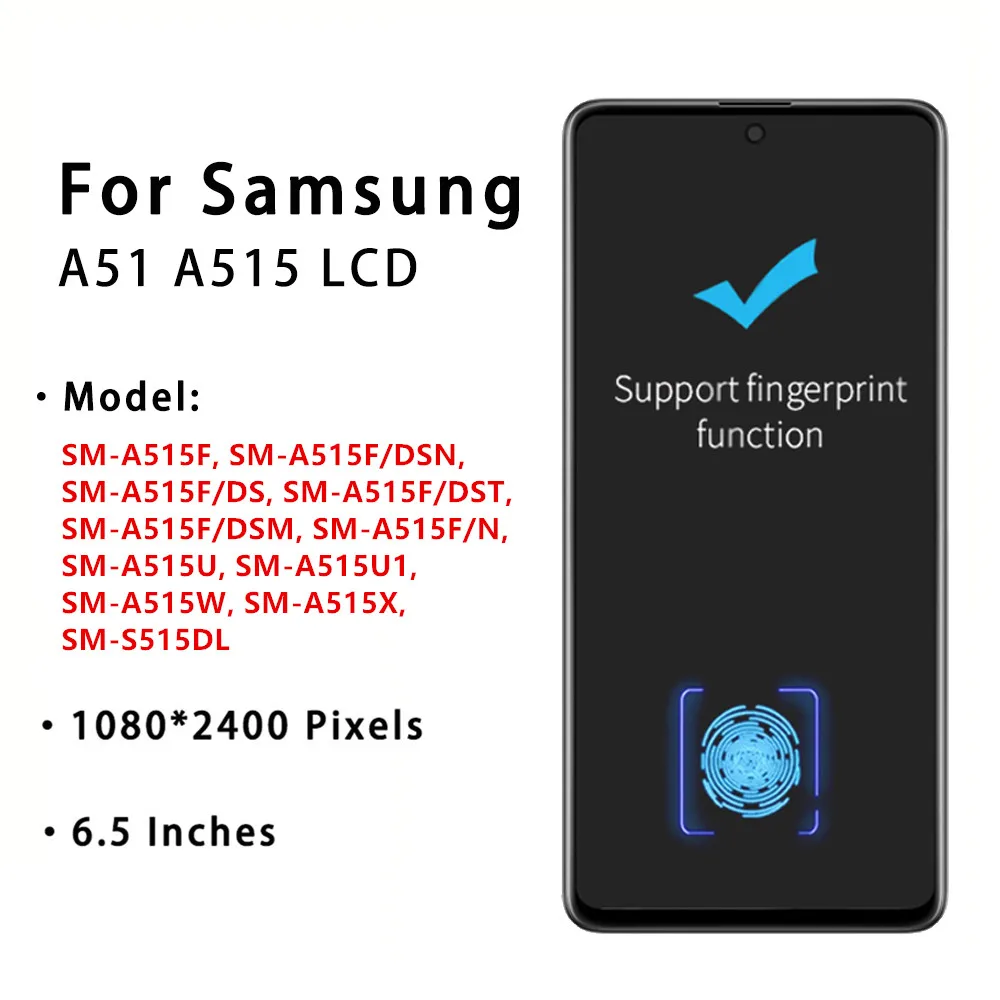 Super AMOLED LCD For Samsung Galaxy A51 Touch Screen Digitizer Assembly Display For Samsung A51 A515 A515F A515F/DS A515FD